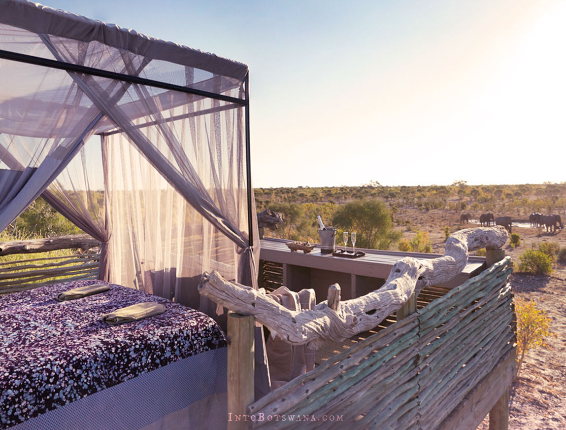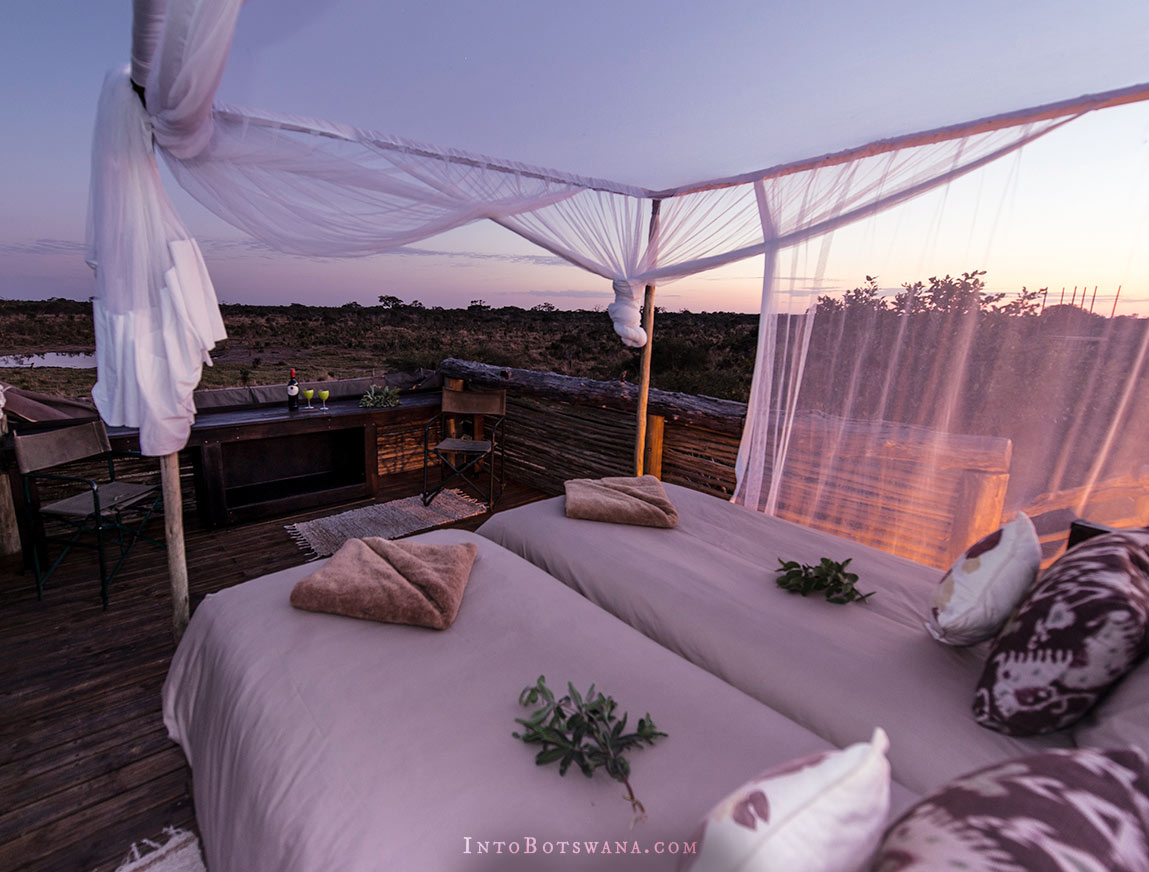Offering a truly unique way to spend time in the bush, this is no ordinary safari camp experience. Instead, each "room" is usually a three-story raised platform, overlooking the wildlife-spotted plains. Charmingly rustic yet perfectly stylish, you'll find a bathroom on the first floor, a dressing area in the middle, and the ultimate cherry on the top floor, an enormous double bed, draped in white linens and a feather duvet, and completely open to the stars. Looking up, the sky is your very own celestial theatre.